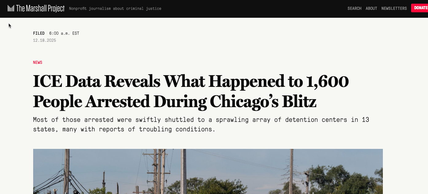 And the Marshall Project wanted to know what happened to people after they were arrested. Their analysis followed 1,600 people arrested during the Midway Blitz in Chicago through the sprawling detention system nationwide.
