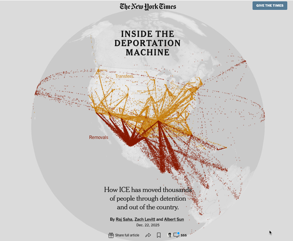 In December, a team at the New York Times delved into what it called the “deportation machine” (gift link), analyzing data from the Deportation Data Project to show how immigrants were moved around the country and eventually deported.